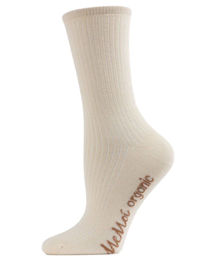 MeMoi Organic Cotton Flat-Knit Crew Socks/mock rib