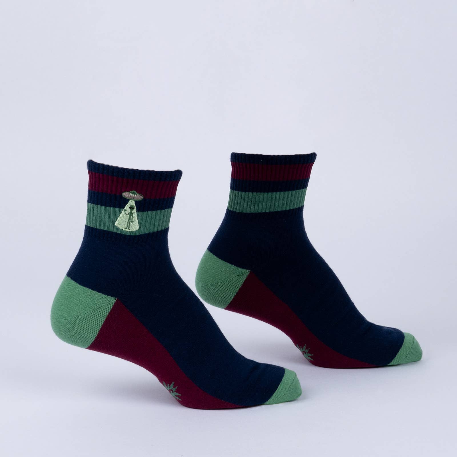 Beam up style with embroidered UFO socks! Out-of-this-world comfort meets extraterrestrial flair—perfect for adventures on Earth or beyond.