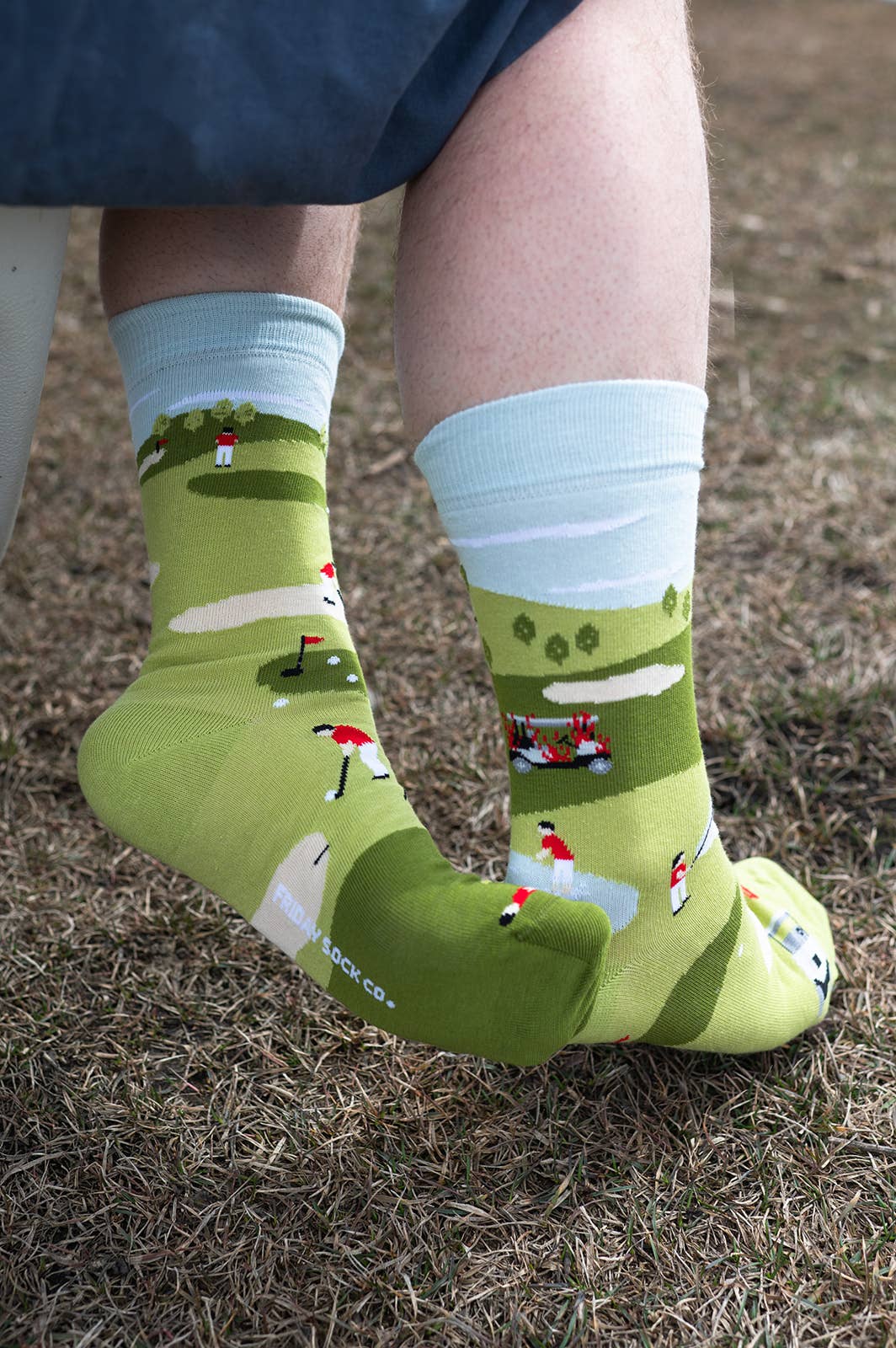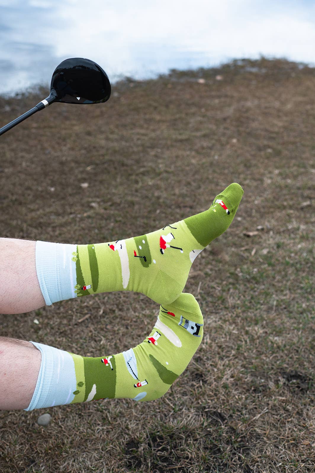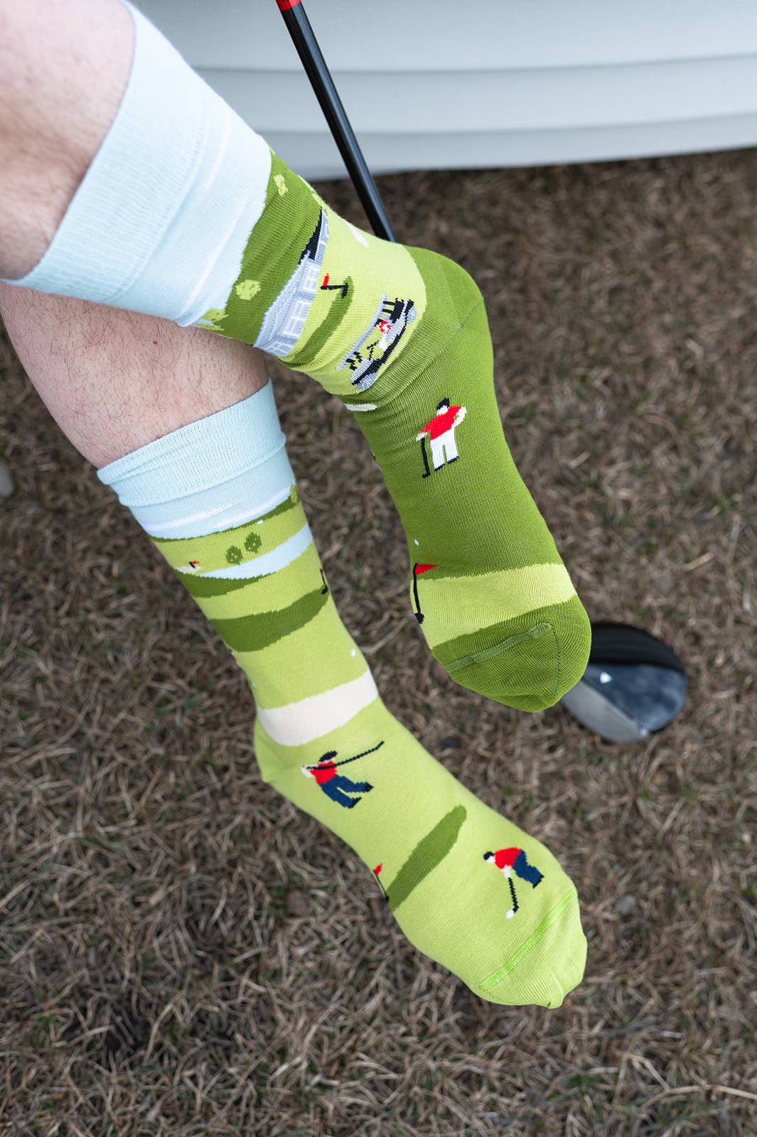 Tee up your style with our Men’s Golf Scene Socks, where every step feels like a day on the green. These quirky mismatched socks are a par-fect gift for golfers who love a little fun below the ankles! Designed in Canada, ethically made in Italy. 85% Egyptian Combed Cotton 12% Nylon 3% Spandex Expertly sewn Rosso Toe Link Yarn blend extending throughout the top cuff for extra durability and comfort Reinforced Heel & Toe Produced using eco-friendly certified Egyptian Combed Cotton*
