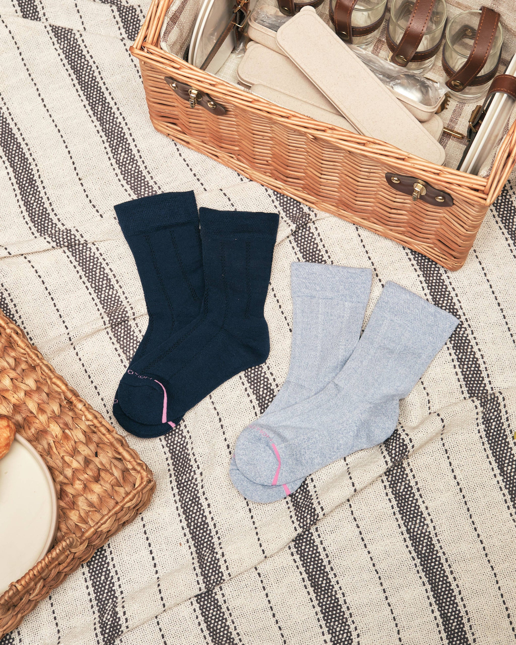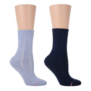 * Two (2) pairs per pack; one pair of each design shown * Suitable for diabetics * Anti-microbial & anti-odor * Non-binding Lycra and graduated cuff allows for maximum stretch to provide unrestricted circulation & comfort and provide a better fit around the leg * Latex free, Sorbtek yarn blend socks away moisture to keep feet dry * Enhanced cushion.