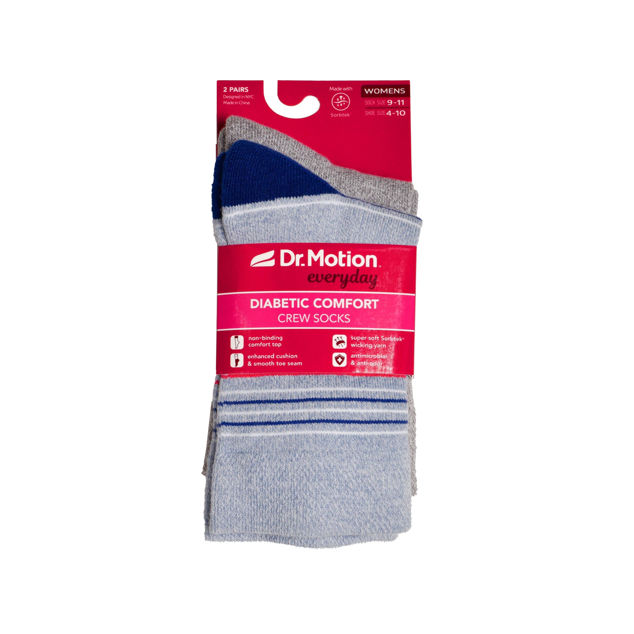 * Two (2) pairs per pack; one pair of each design shown * Suitable for diabetics * Anti-microbial & anti-odor * Non-binding Lycra and graduated cuff allows for maximum stretch to provide unrestricted circulation & comfort and provide a better fit around the leg * Latex free, Sorbtek yarn blend socks away moisture to keep feet dry * Enhanced cushion provides maximum impact prot