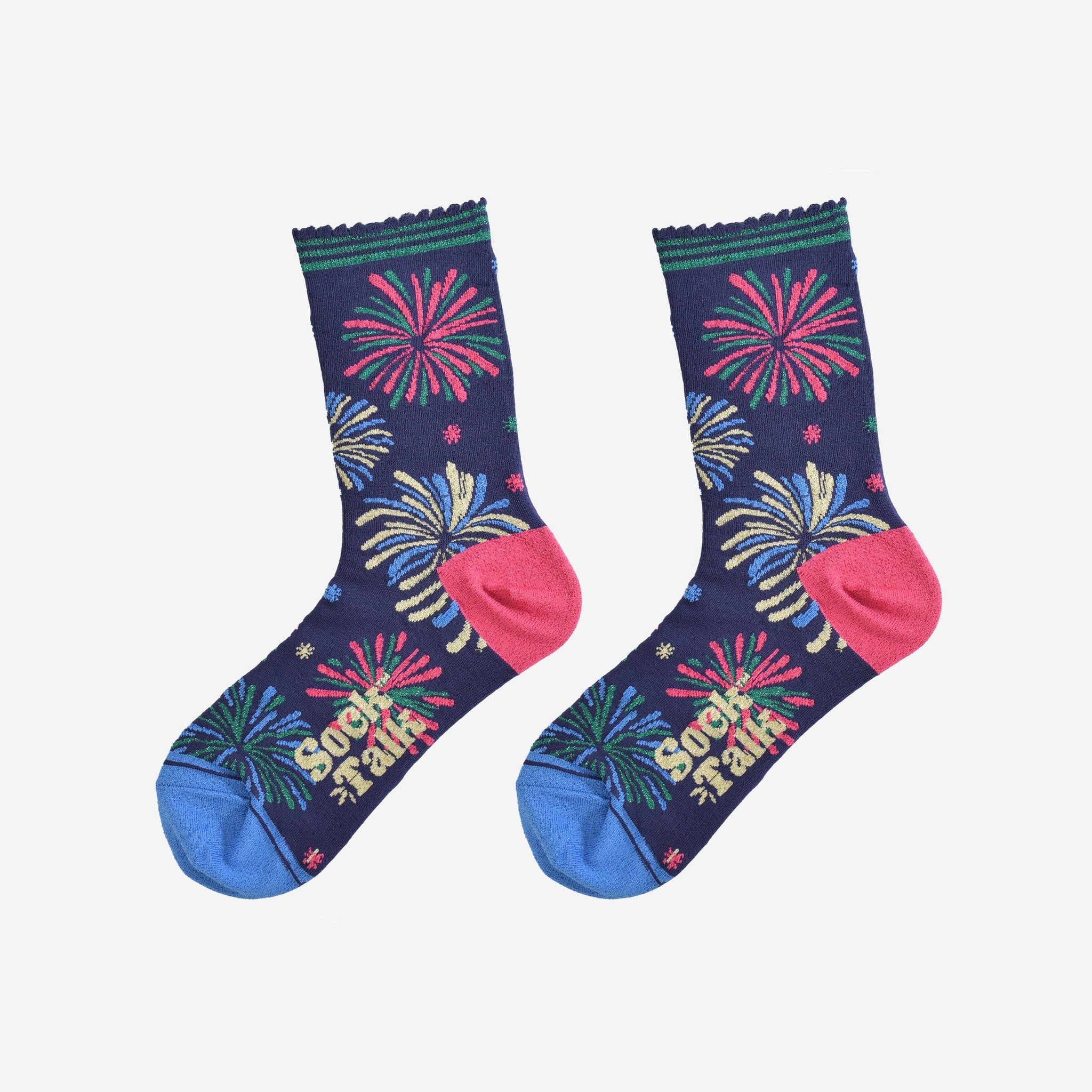 Crafted from naturally breathable bamboo and showcasing a colourful fireworks display. These celebratory socks are eco-conscious and feel luxuriously soft. Showcasing a green striped scalloped cuff for a luxuriously comfortable fit. 🧵 FABRIC Crafted from antibacterial, antifungal, hypoallergenic, and thermo-regulating bamboo fabric. The fabric feels soft and breathable on the skin. 70% Bamboo, 27% Polyester, 3% Elastane